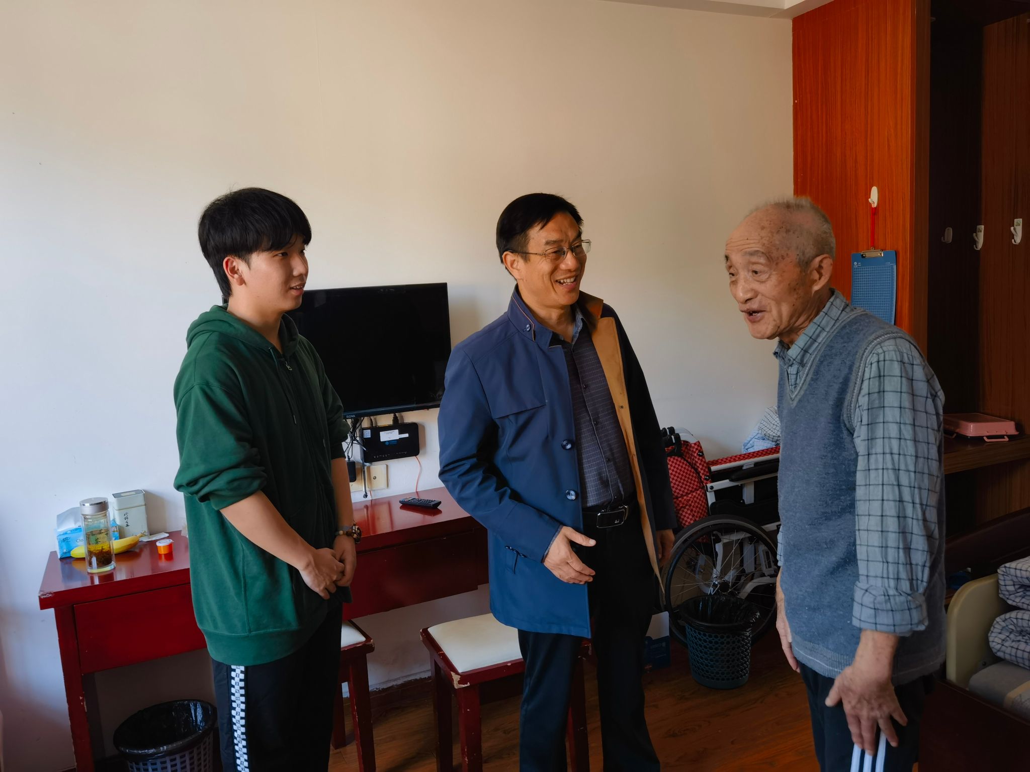 10月19日重阳节前夕,国产自拍 党委书记廖志凌带领学院党务办主任、团委副书记、关工委秘书及学生代表等走访慰问学院老教师。