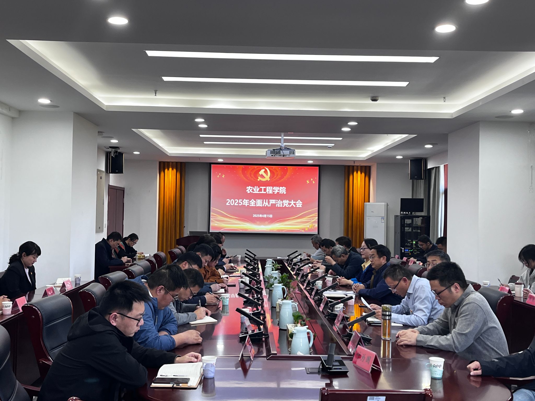 4月15日,国产自拍 2025年全面从严治党大会在耒耜大楼F304会议室召开。校纪委委员、巡察办主任徐惠红莅临指导,学院党委全体委员、中层干部、师生党支部书记、科级干部及办公室人员等参加了会议,会议由学院党委书记廖志凌主持。