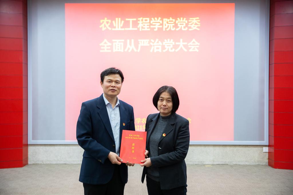 会议现场举行了全面从严治党与意识形态工作责任制责任书签订递交仪式。学院党委委员与各支部书记逐一向学院党委递交了全面从严治党主体责任书和意识形态工作责任制责任书,学院党委以此层层压紧压实全面从严治党与意识形态工作责任制责任。